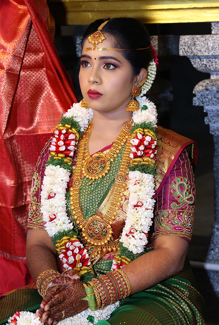 At Shaalini Sampath Bridal Studio, we specialize in complete bridal transformations-from flawless makeup and elegant hairstyles to saree draping, styling and professional makeovers for every member of your family. With HD, Higher-End HD and Airbrush techniques, every look is crafted to perfection and made to last.