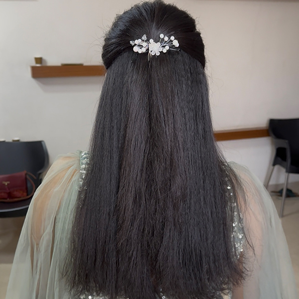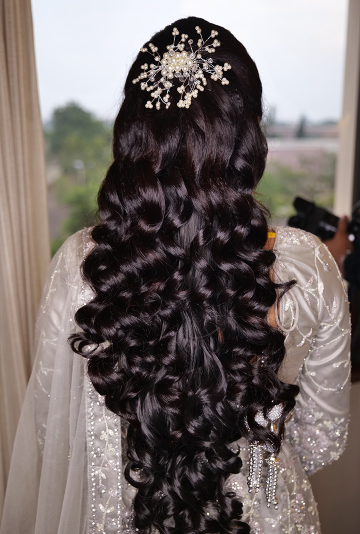 - Professional Hairstyling that complements your bridal outfit.
