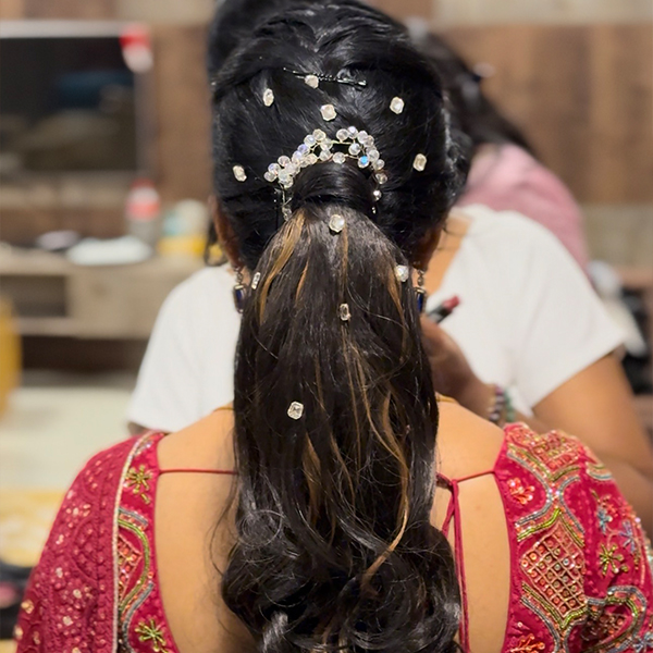 At our Bridal Studio, we bring together expertise in Bridal Makeup, Hairstyling, Saree Draping and Styling to ensure every bride looks flawless and confident. Whether it's a classic, modern or minimal bridal look, our team personalizes every detail to match your personality and event theme.