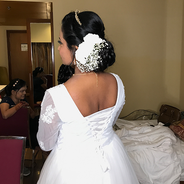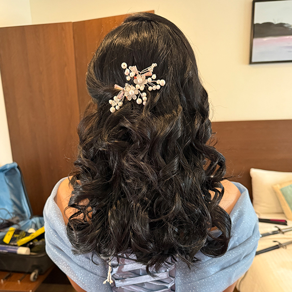 - Professional Hairstyling that complements your bridal outfit.
