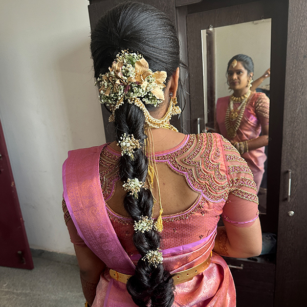 At Shaalini Sampath Bridal Studio, we specialize in complete bridal transformations-from flawless makeup and elegant hairstyles to saree draping, styling and professional makeovers for every member of your family. With HD, Higher-End HD and Airbrush techniques, every look is crafted to perfection and made to last.